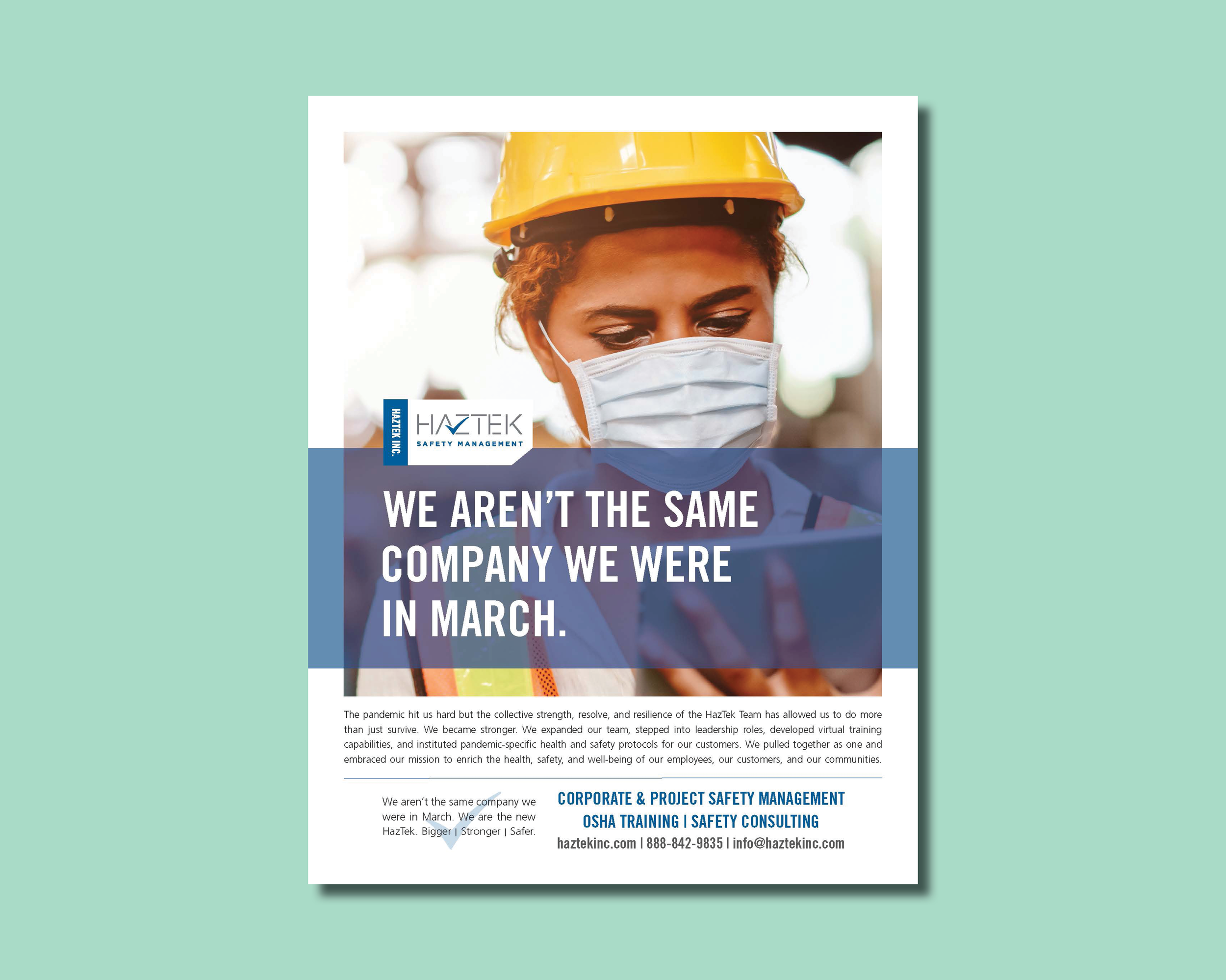 National ad campaign to build awareness of HazTek’s COVID response services and to detail the company’s own growth during an exceptionally challenging time. This launch corresponded to the “HazTek Strong” online video.